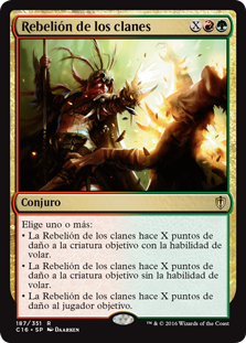 • Clan Defiance deals X damage to target creature with flying.