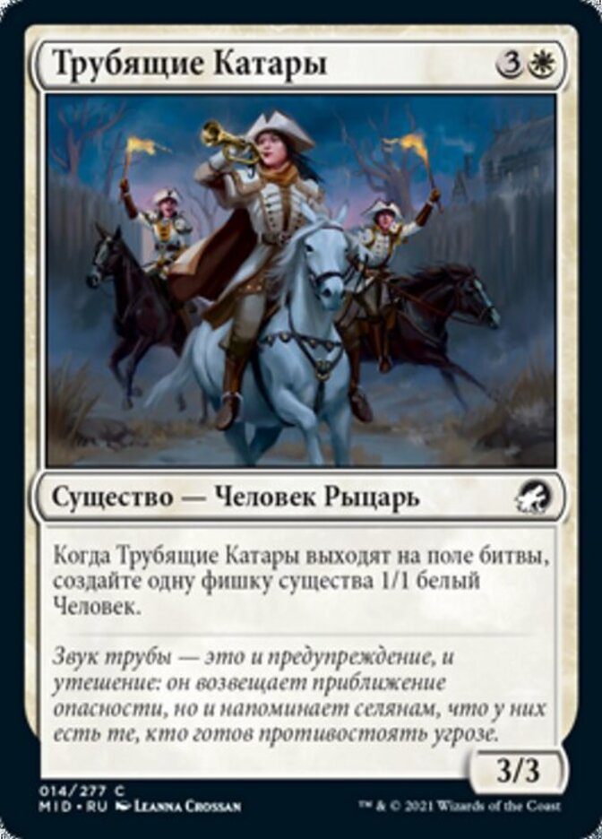 | Rules | When Clarion Cathars enters the battlefield, create a 1/1 white Human creature token. |