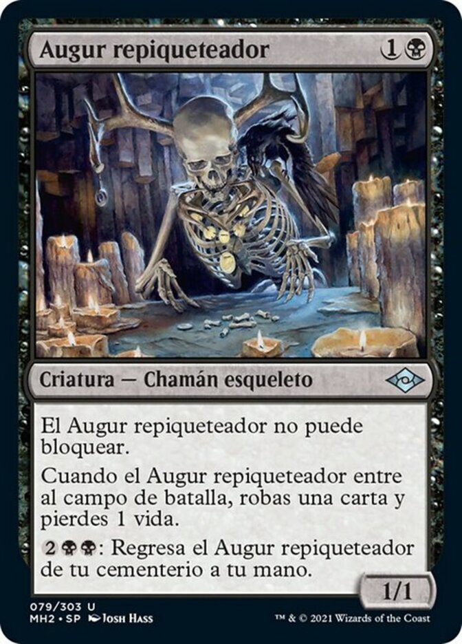 | Rules | Clattering Augur can't block. When Clattering Augur enters the battlefield, you draw a card and you lose 1 life. : Return Clattering Augur from your graveyard to your hand. |