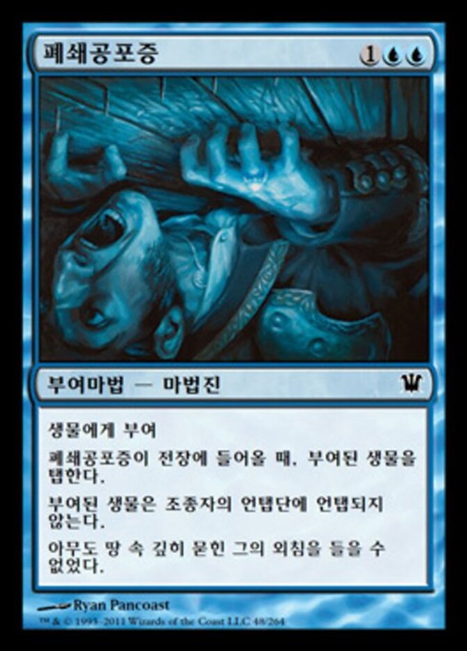 | Rules | Enchant creature When Claustrophobia enters the battlefield, tap enchanted creature. Enchanted creature doesn't untap during its controller's untap step. |