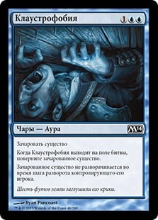 | Rules | Enchant creature When Claustrophobia enters the battlefield, tap enchanted creature. Enchanted creature doesn't untap during its controller's untap step. |