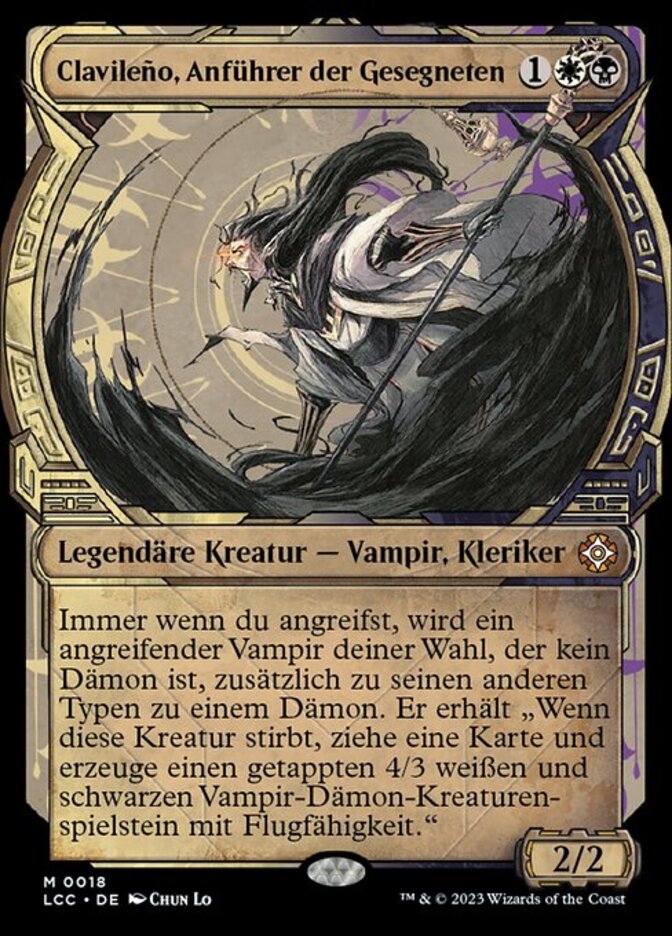 | Rules | Whenever you attack, target attacking Vampire that isn't a Demon becomes a Demon in addition to its other types. It gains "When this creature dies, draw a card and create a tapped 4/3 white and black Vampire Demon creature token with flying." |
