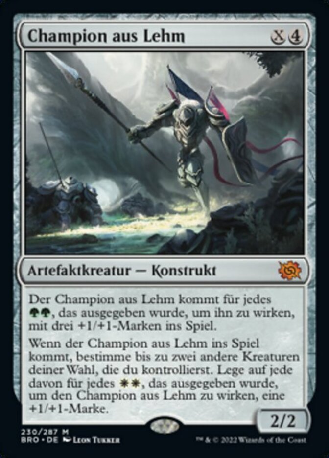 | Rules | Clay Champion enters the battlefield with three +1/+1 counters on it for each spent to cast it. When Clay Champion enters the battlefield, choose up to two other target creatures you control. For each spent to cast Clay Champion, put a +1/+1 counter on each of them. |