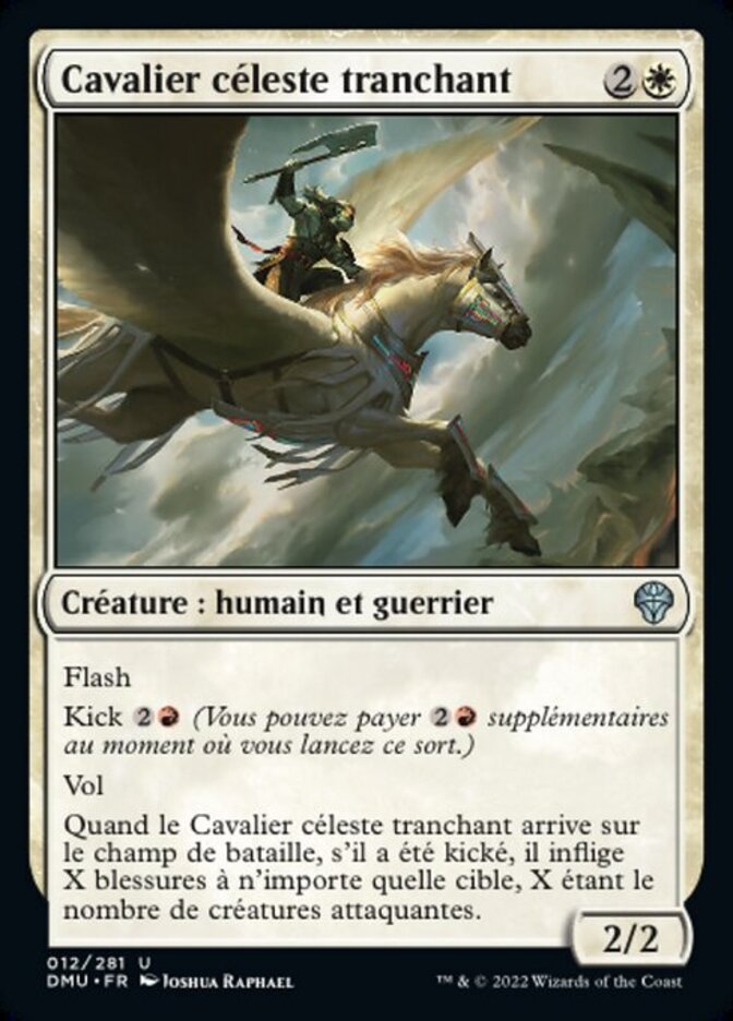 | Rules | Flash Kicker (You may pay an additional as you cast this spell.) Flying When Cleaving Skyrider enters the battlefield, if it was kicked, it deals X damage to any target, where X is the number of attacking creatures. |