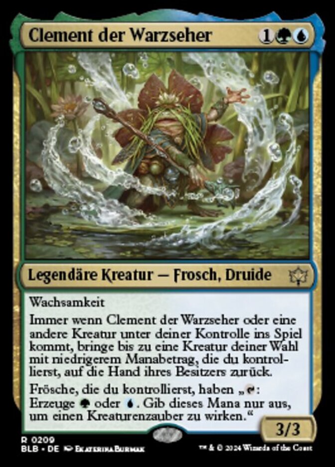 | Rules | Vigilance Whenever Clement, the Worrywort or another creature you control enters, return up to one target creature you control with lesser mana value to its owner's hand. Frogs you control have ": Add or . Spend this mana only to cast a creature spell." |