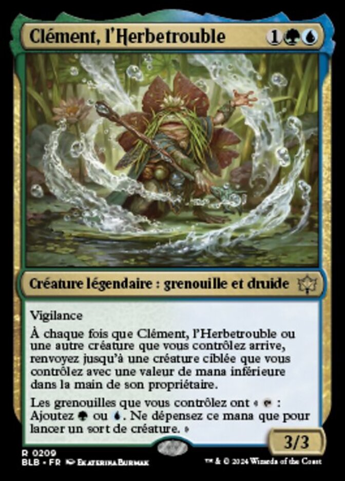 | Rules | Vigilance Whenever Clement, the Worrywort or another creature you control enters, return up to one target creature you control with lesser mana value to its owner's hand. Frogs you control have ": Add or . Spend this mana only to cast a creature spell." |