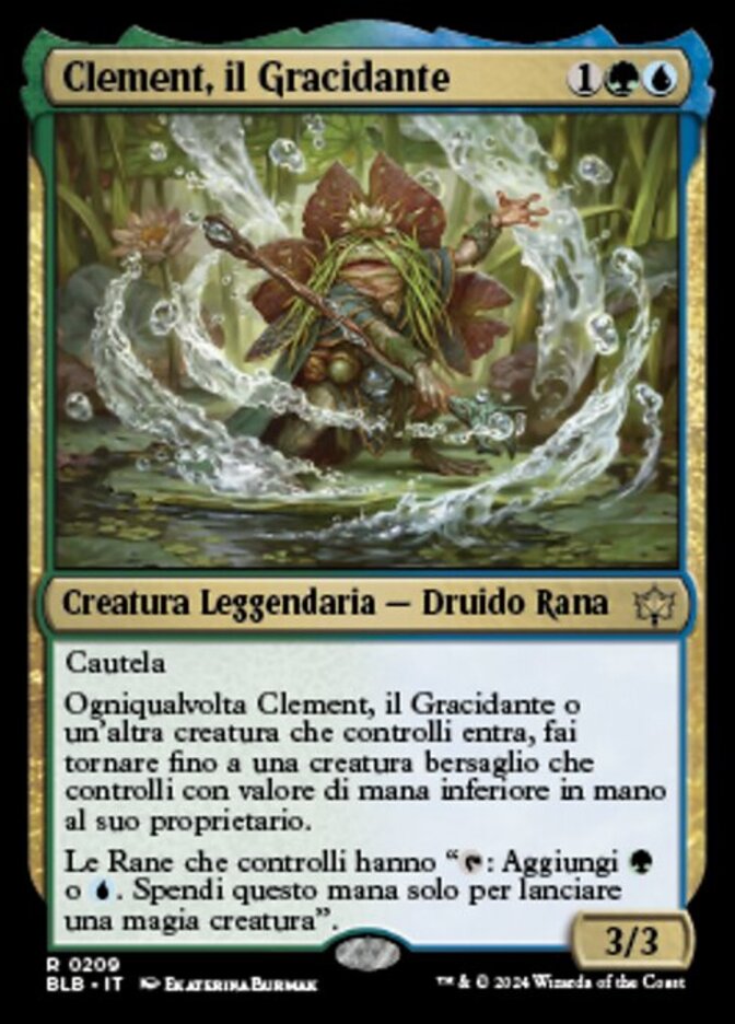 | Rules | Vigilance Whenever Clement, the Worrywort or another creature you control enters, return up to one target creature you control with lesser mana value to its owner's hand. Frogs you control have ": Add or . Spend this mana only to cast a creature spell." |