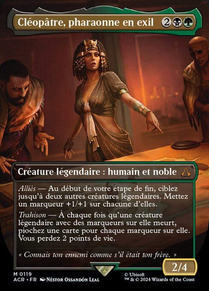 | Rules | Allies — At the beginning of your end step, put a +1/+1 counter on each of up to two other target legendary creatures. Betrayal — Whenever a legendary creature with counters on it dies, draw a card for each counter on it. You lose 2 life. |