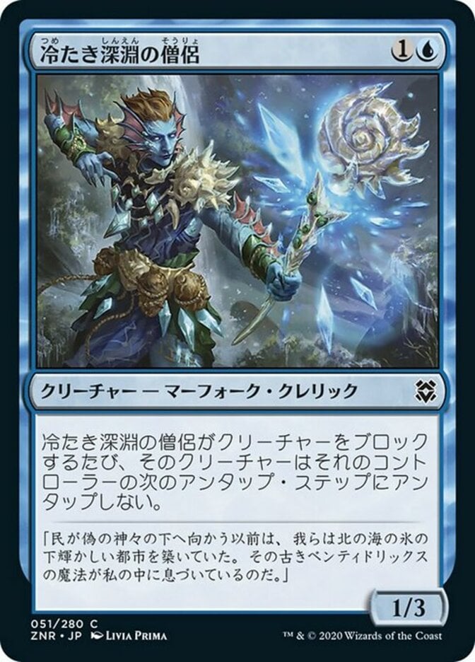 | Rules | Whenever Cleric of Chill Depths blocks a creature, that creature doesn't untap during its controller's next untap step. |