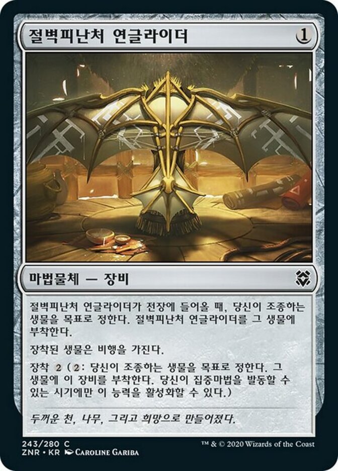| Rules | When Cliffhaven Kitesail enters the battlefield, attach it to target creature you control. Equipped creature has flying. Equip (: Attach to target creature you control. Equip only as a sorcery.) |
