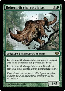 | Rules | Cliffrunner Behemoth has haste as long as you control a red permanent. Cliffrunner Behemoth has lifelink as long as you control a white permanent. |