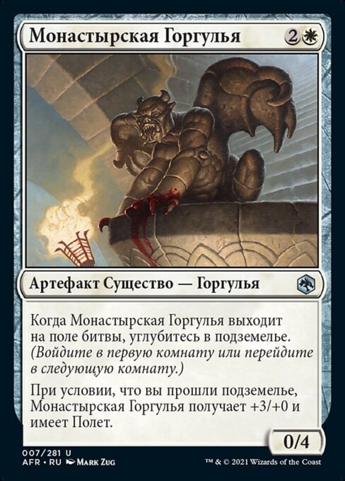 | Rules | When Cloister Gargoyle enters the battlefield, venture into the dungeon. (Enter the first room or advance to the next room.) As long as you've completed a dungeon, Cloister Gargoyle gets +3/+0 and has flying. |