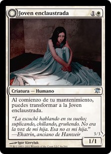 | Rules | At the beginning of your upkeep, you may transform Cloistered Youth. // At the beginning of your end step, you lose 1 life. |