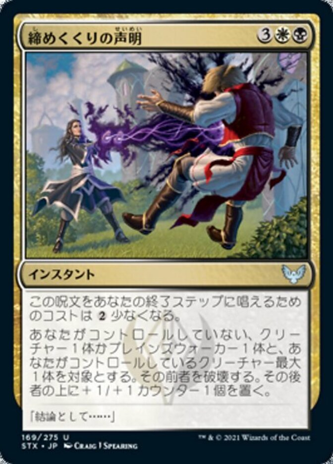 | Rules | This spell costs less to cast during your end step. Destroy target creature or planeswalker you don't control. Put a +1/+1 counter on up to one target creature you control. |