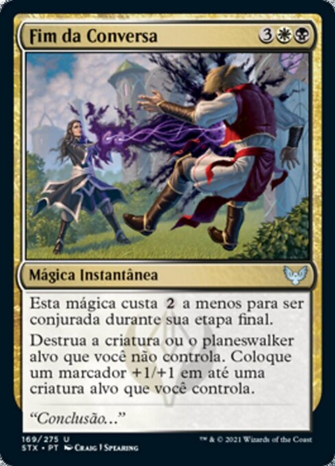 | Rules | This spell costs less to cast during your end step. Destroy target creature or planeswalker you don't control. Put a +1/+1 counter on up to one target creature you control. |
