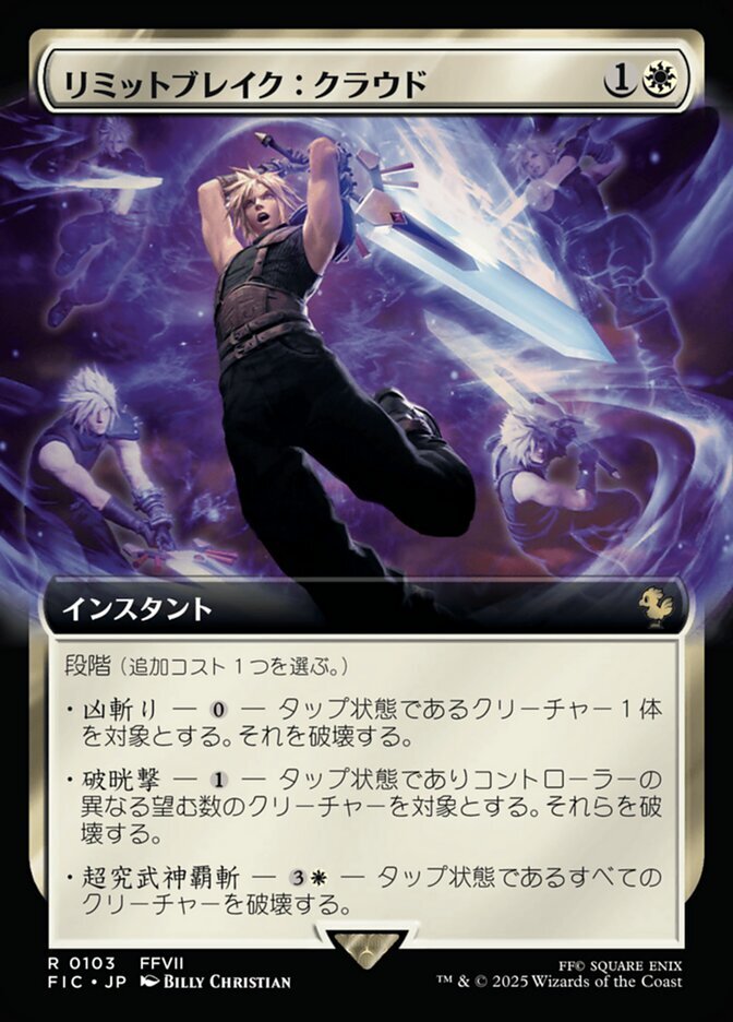 | Rules | Tiered (Choose one additional cost.) • Cross-Slash — — Destroy target tapped creature. • Blade Beam — — Destroy any number of target tapped creatures with different controllers. • Omnislash — — Destroy all tapped creatures. |