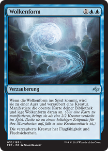 | Rules | When Cloudform enters the battlefield, it becomes an Aura with enchant creature. Manifest the top card of your library and attach Cloudform to it. (To manifest a card, put it onto the battlefield face down as a 2/2 creature. Turn it face up any time for its mana cost if it's a creature card.) Enchanted creature has flying and hexproof. |