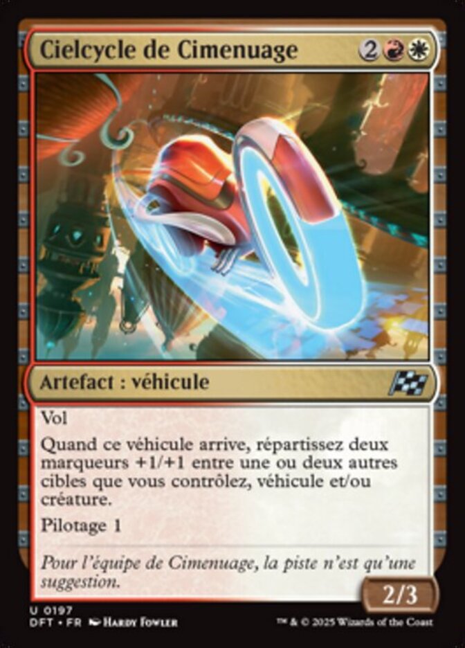 | Rules | Flying When this Vehicle enters, distribute two +1/+1 counters among one or two other target Vehicles and/or creatures you control. Crew 1 |