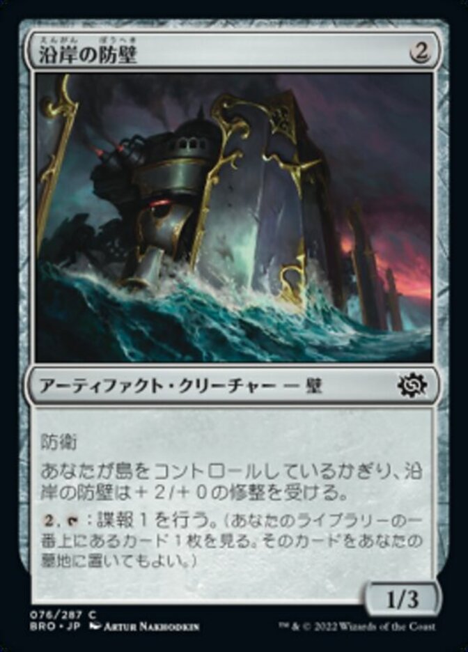 | Rules | Defender Coastal Bulwark gets +2/+0 as long as you control an Island. , : Surveil 1. (Look at the top card of your library. You may put that card into your graveyard.) |