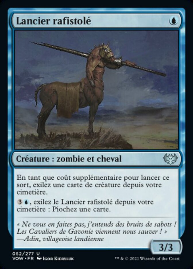 | Rules | As an additional cost to cast this spell, exile a creature card from your graveyard. , Exile Cobbled Lancer from your graveyard: Draw a card. |