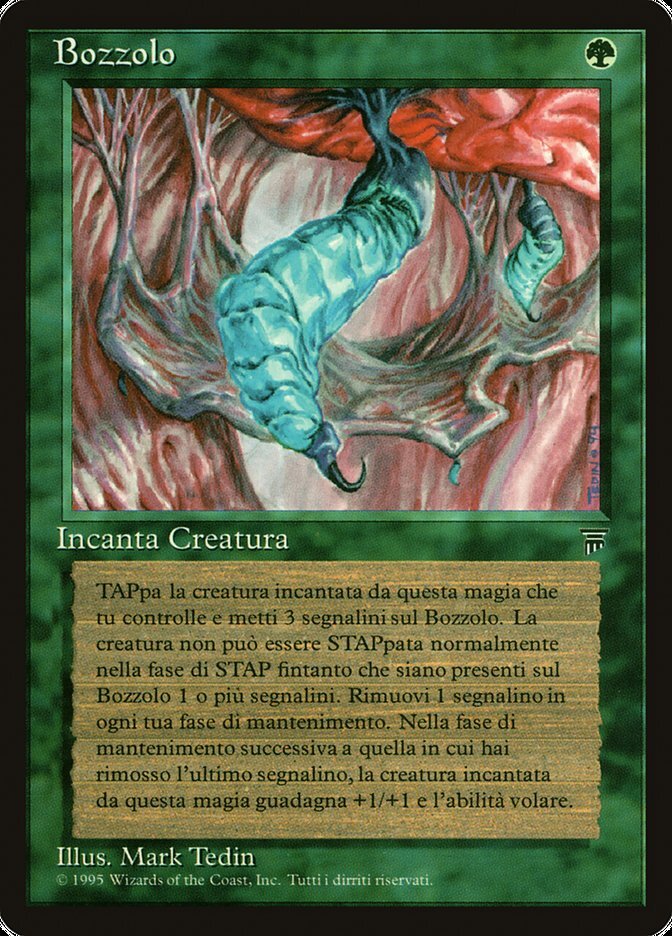| Rules | Enchant creature you control When Cocoon enters the battlefield, tap enchanted creature and put three pupa counters on Cocoon. Enchanted creature doesn't untap during your untap step if Cocoon has a pupa counter on it. At the beginning of your upkeep, remove a pupa counter from Cocoon. If you can't, sacrifice it, put a +1/+1 counter on enchanted creature, and that creature gains flying. |
