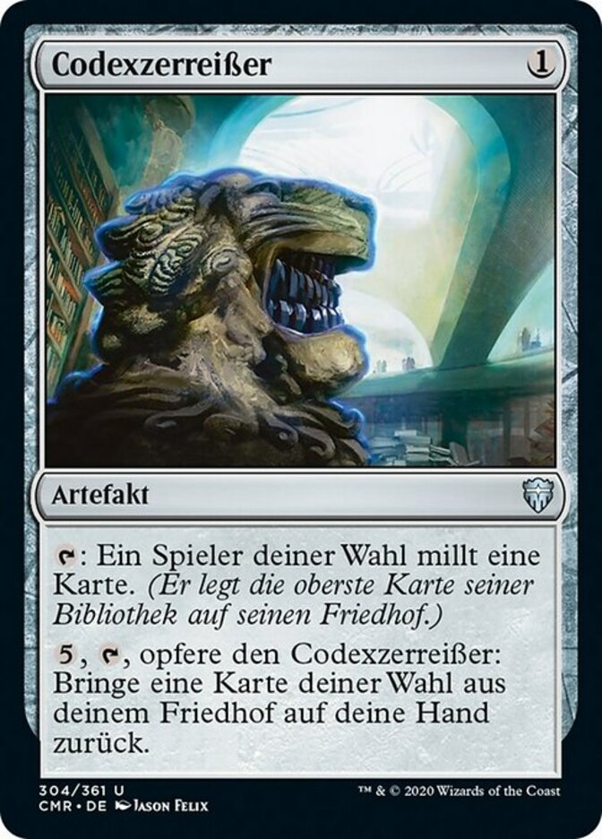 | Rules | : Target player mills a card. (They put the top card of their library into their graveyard.) , , Sacrifice Codex Shredder: Return target card from your graveyard to your hand. |