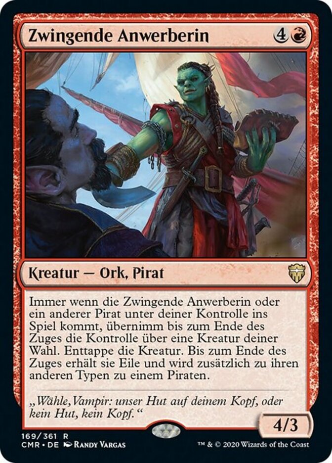 | Rules | Whenever Coercive Recruiter or another Pirate enters the battlefield under your control, gain control of target creature until end of turn. Untap that creature. Until end of turn, it gains haste and becomes a Pirate in addition to its other types. |