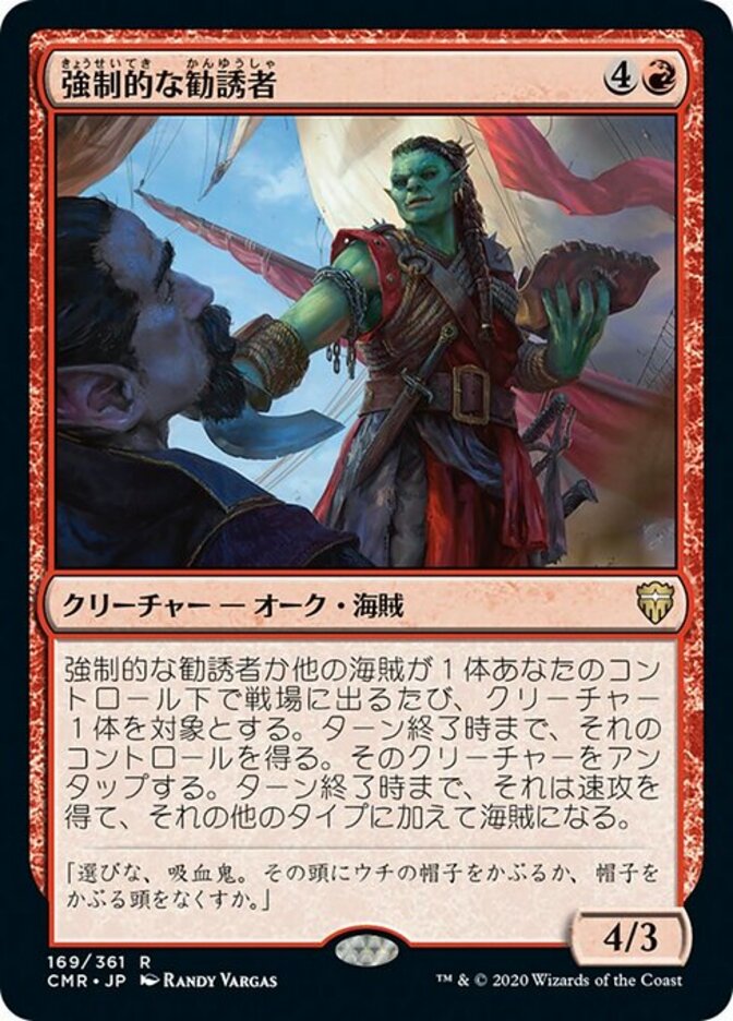 Rules Whenever Coercive Recruiter or another Pirate enters the battlefield under your control, gain control of target creature until end of turn. Untap that creature. Until end of turn, it gains haste and becomes a Pirate in addition to its other types.