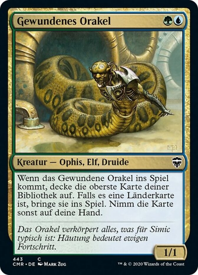 | Rules | When Coiling Oracle enters the battlefield, reveal the top card of your library. If it's a land card, put it onto the battlefield. Otherwise, put that card into your hand. |