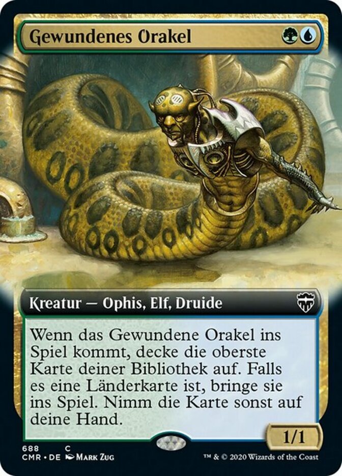 | Rules | When Coiling Oracle enters the battlefield, reveal the top card of your library. If it's a land card, put it onto the battlefield. Otherwise, put that card into your hand. |