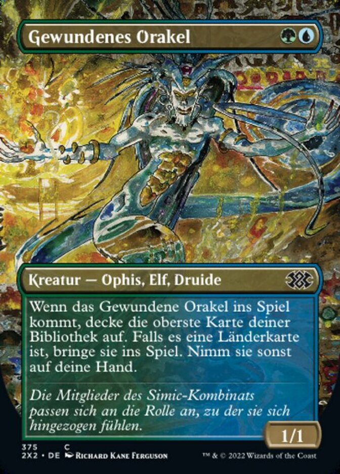 | Rules | When Coiling Oracle enters the battlefield, reveal the top card of your library. If it's a land card, put it onto the battlefield. Otherwise, put that card into your hand. |