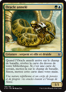 | Rules | When Coiling Oracle enters the battlefield, reveal the top card of your library. If it's a land card, put it onto the battlefield. Otherwise, put that card into your hand. |