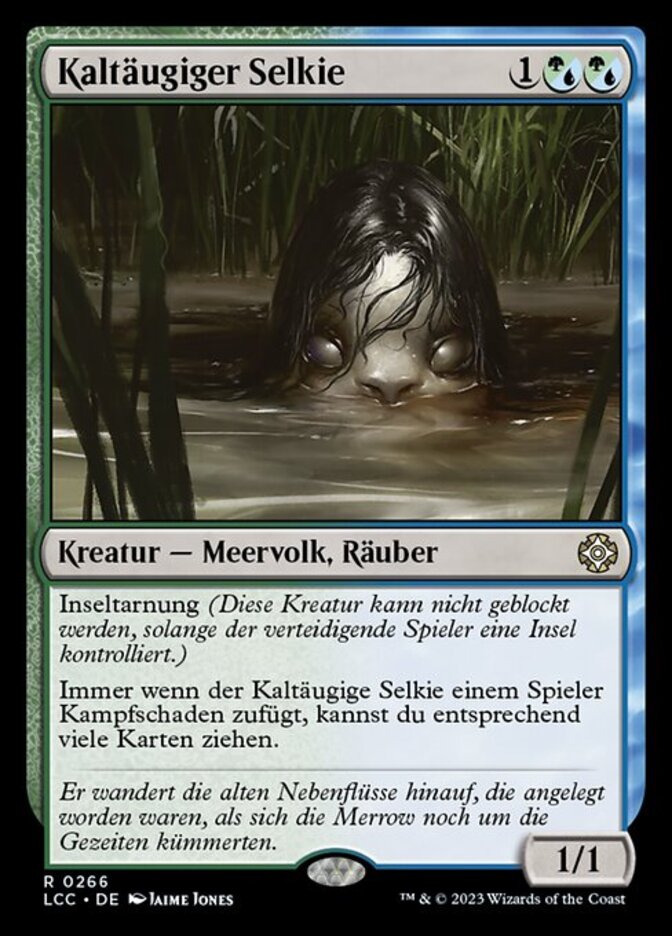 | Rules | Islandwalk (This creature can't be blocked as long as defending player controls an Island.) Whenever Cold-Eyed Selkie deals combat damage to a player, you may draw that many cards. |