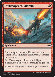 | Rules | As an additional cost to cast this spell, sacrifice a creature. Collateral Damage deals 3 damage to any target. |