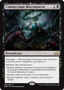 | Rules | Escalate—Discard a card. (Pay this cost for each mode chosen beyond the first.) Choose one or more — • Target opponent reveals their hand. You choose an instant or sorcery card from it. That player discards that card. • Target creature gets -2/-2 until end of turn. • Target opponent loses 2 life and you gain 2 life. |