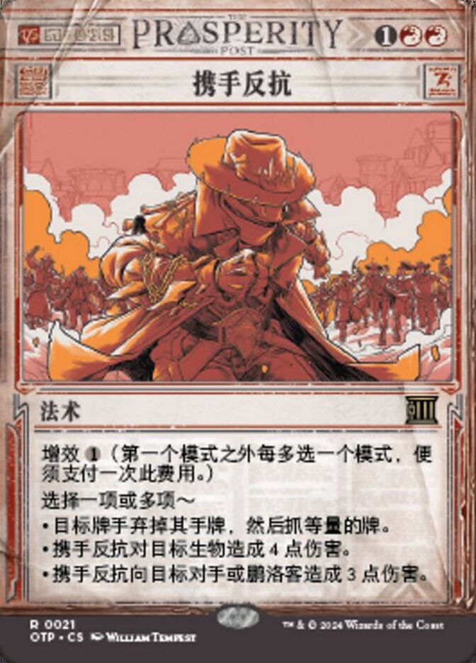 | Rules | Escalate (Pay this cost for each mode chosen beyond the first.) Choose one or more — • Target player discards all the cards in their hand, then draws that many cards. • Collective Defiance deals 4 damage to target creature. • Collective Defiance deals 3 damage to target opponent or planeswalker. |