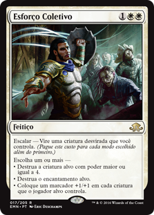 | Rules | Escalate—Tap an untapped creature you control. (Pay this cost for each mode chosen beyond the first.) Choose one or more — • Destroy target creature with power 4 or greater. • Destroy target enchantment. • Put a +1/+1 counter on each creature target player controls. |