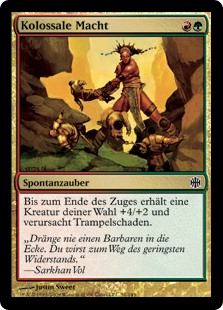 | Rules | Target creature gets +4/+2 and gains trample until end of turn. |