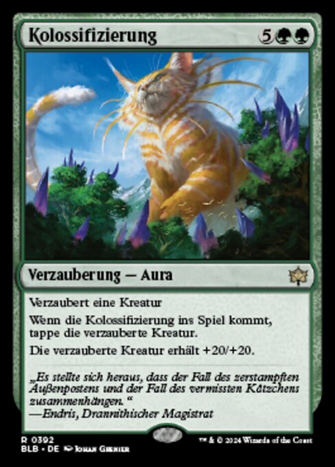 | Rules | Enchant creature When Colossification enters the battlefield, tap enchanted creature. Enchanted creature gets +20/+20. |