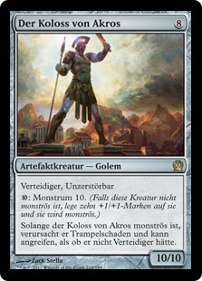 | Rules | Defender, indestructible : Monstrosity 10. (If this creature isn't monstrous, put ten +1/+1 counters on it and it becomes monstrous.) As long as Colossus of Akros is monstrous, it has trample and can attack as though it didn't have defender. |