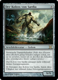 | Rules | Trample (This creature can deal excess combat damage to the player or planeswalker it's attacking.) Colossus of Sardia doesn't untap during your untap step. : Untap Colossus of Sardia. Activate only during your upkeep. |