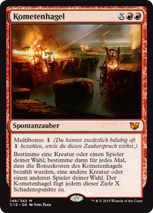 | Rules | Multikicker (You may pay an additional any number of times as you cast this spell.) Choose any target, then choose another target for each time this spell was kicked. Comet Storm deals X damage to each of them. |