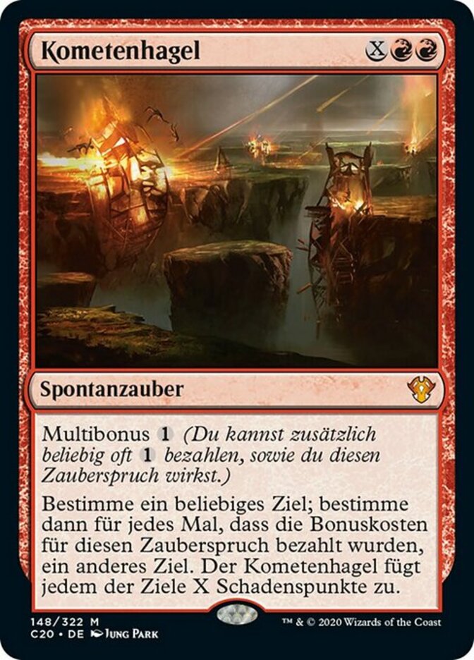 | Rules | Multikicker (You may pay an additional any number of times as you cast this spell.) Choose any target, then choose another target for each time this spell was kicked. Comet Storm deals X damage to each of them. |