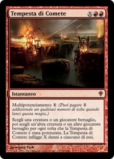 | Rules | Multikicker (You may pay an additional any number of times as you cast this spell.) Choose any target, then choose another target for each time this spell was kicked. Comet Storm deals X damage to each of them. |