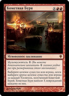| Rules | Multikicker (You may pay an additional any number of times as you cast this spell.) Choose any target, then choose another target for each time this spell was kicked. Comet Storm deals X damage to each of them. |