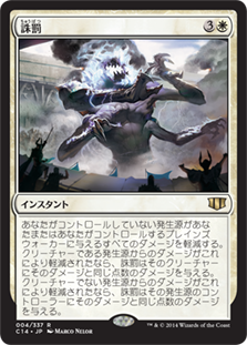 | Rules | Prevent all damage that would be dealt to you and planeswalkers you control this turn by sources you don't control. If damage from a creature source is prevented this way, Comeuppance deals that much damage to that creature. If damage from a noncreature source is prevented this way, Comeuppance deals that much damage to the source's controller. |
