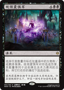 | Rules | Choose any number of target creature and/or planeswalker cards in graveyards. Command the Dreadhorde deals damage to you equal to the total mana value of those cards. Put them onto the battlefield under your control. |