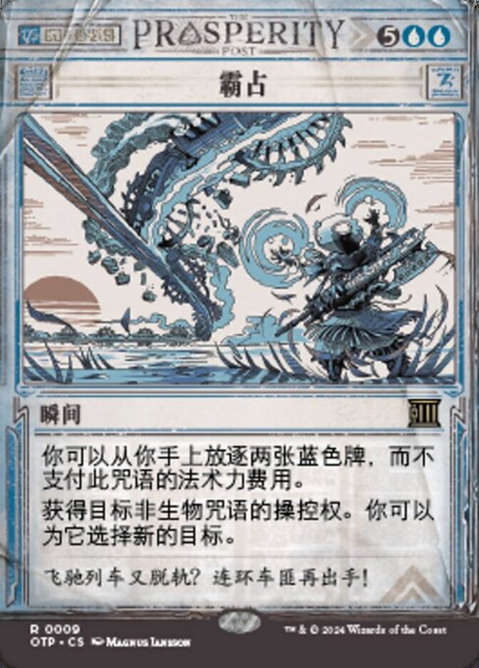| Rules | You may exile two blue cards from your hand rather than pay this spell's mana cost. Gain control of target noncreature spell. You may choose new targets for it. (If that spell is an artifact, enchantment, or planeswalker, the permanent enters the battlefield under your control.) |