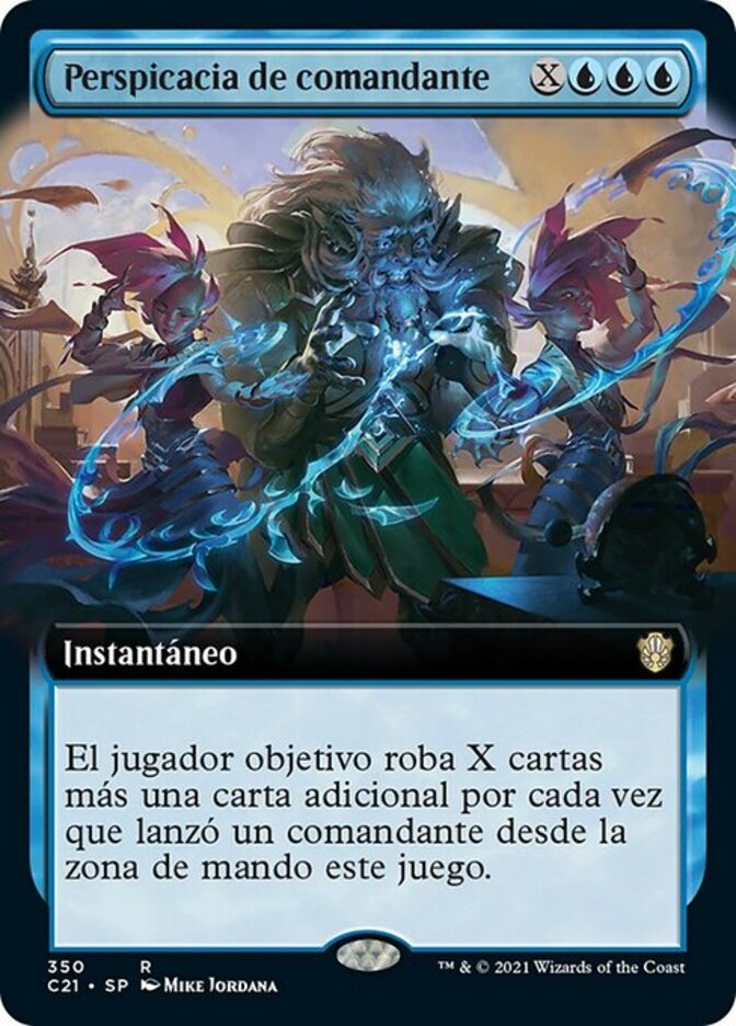 | Rules | Target player draws X cards plus an additional card for each time they've cast a commander from the command zone this game. |