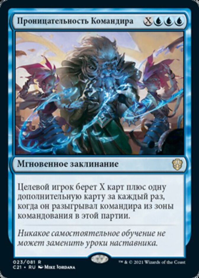 | Rules | Target player draws X cards plus an additional card for each time they've cast a commander from the command zone this game. |